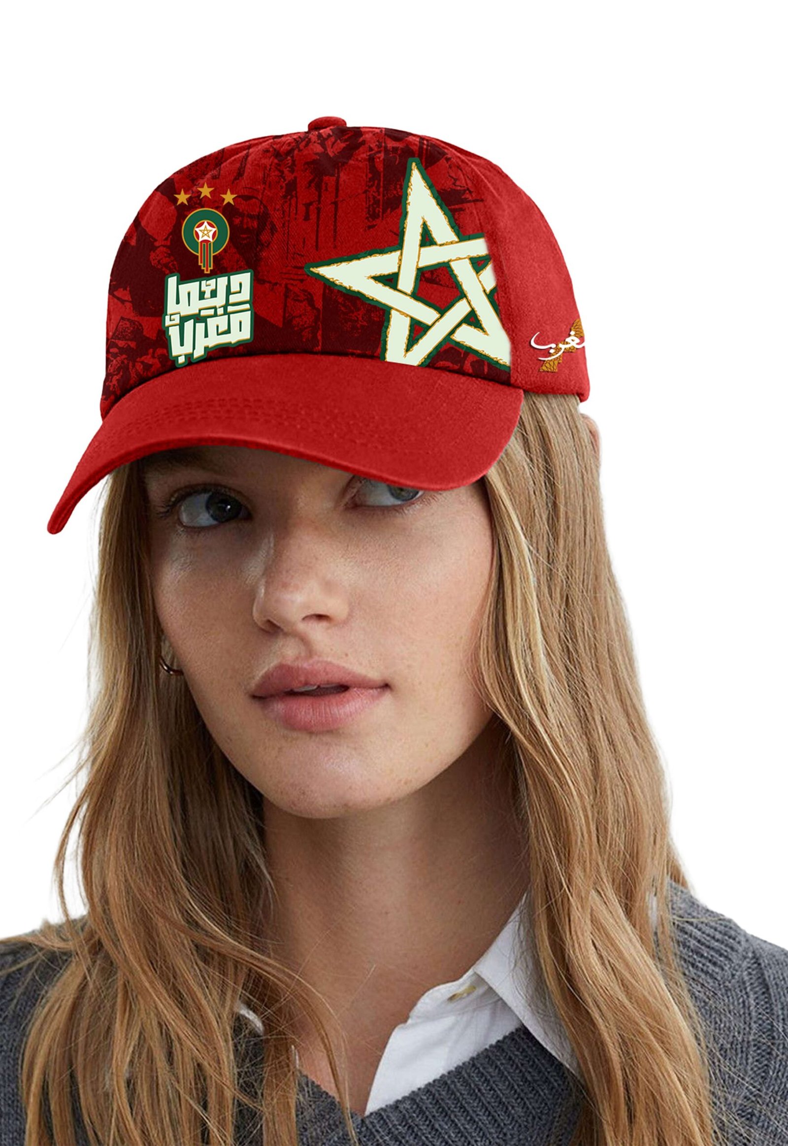 Casquette Rouge avec étoile marocaine et design moderne. Taille ajustable, légère et idéale pour un look sportif et patriote.